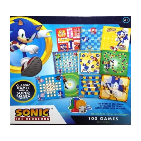 ¡4 juegos en 1 con Sonic y sus amigos! Ajedrez, damas, ludo y serpientes y escaleras en un solo set. Ideal para los fans del erizo más rápido del mundo.
