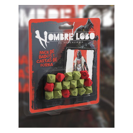 Realza tus partidas de Hombre Lobo: El Apocalipsis con estos dados personalizados y cartas diseñados para aportar claridad y estilo. Cada juego de dados oficial contiene un set de dados para un jugador y cinco cartas de Forma para registrar cuál de las cinco Formas ha adoptado su personaje, además de un resumen de las reglas para esa Forma.
